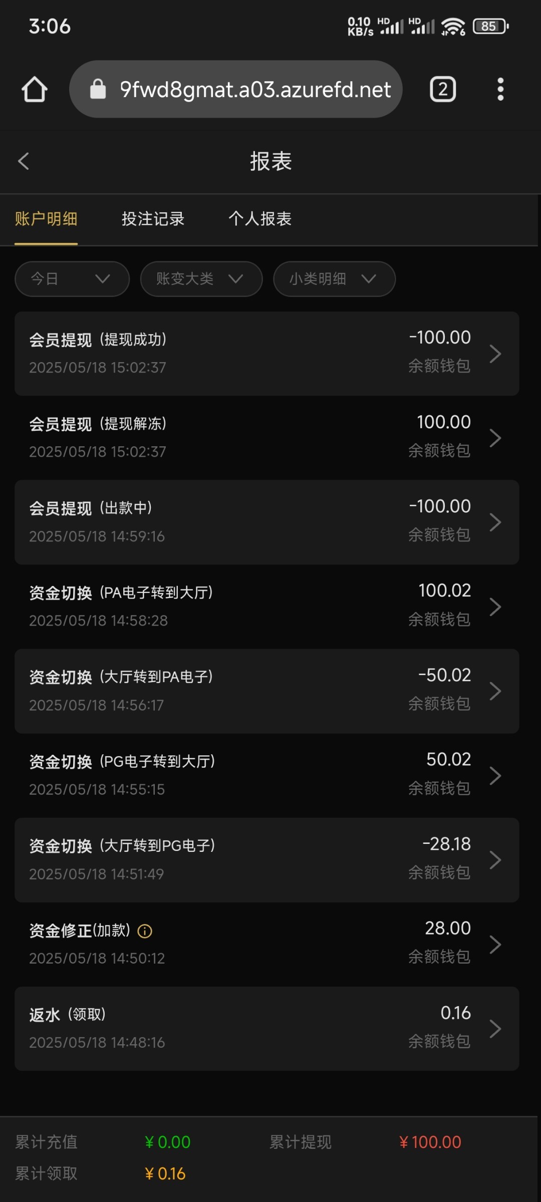 出款情况:自测(