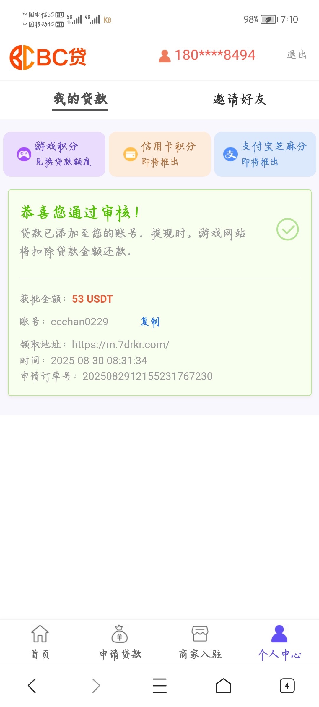 BC贷就相当于一个跳槽金,提供一个你常玩平台的账号密码,让bc审核你的资质,最近半个月内充的越多,打码越多,贷的额度也就越高,这个额度是bc合作的游戏平台给你放额度,你申请哪个平台就在哪个平台里娱乐,你输了就等于还回去了,赢了也就扣除给你的额度,其余盈利部分是正常到账的!建议大家申请凯发,当天申请,次日下午就会放款,新平台记得绑定好收款方式,不然会拒绝!